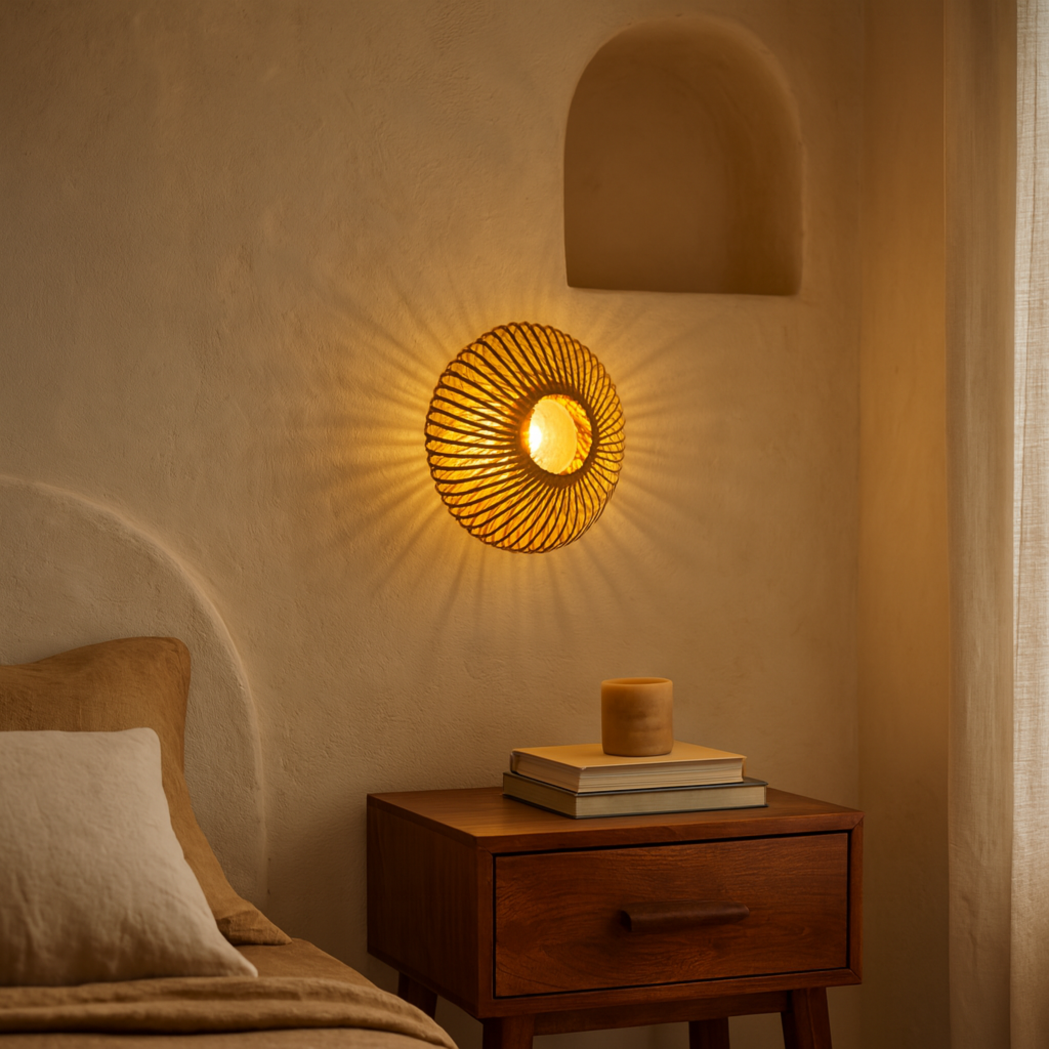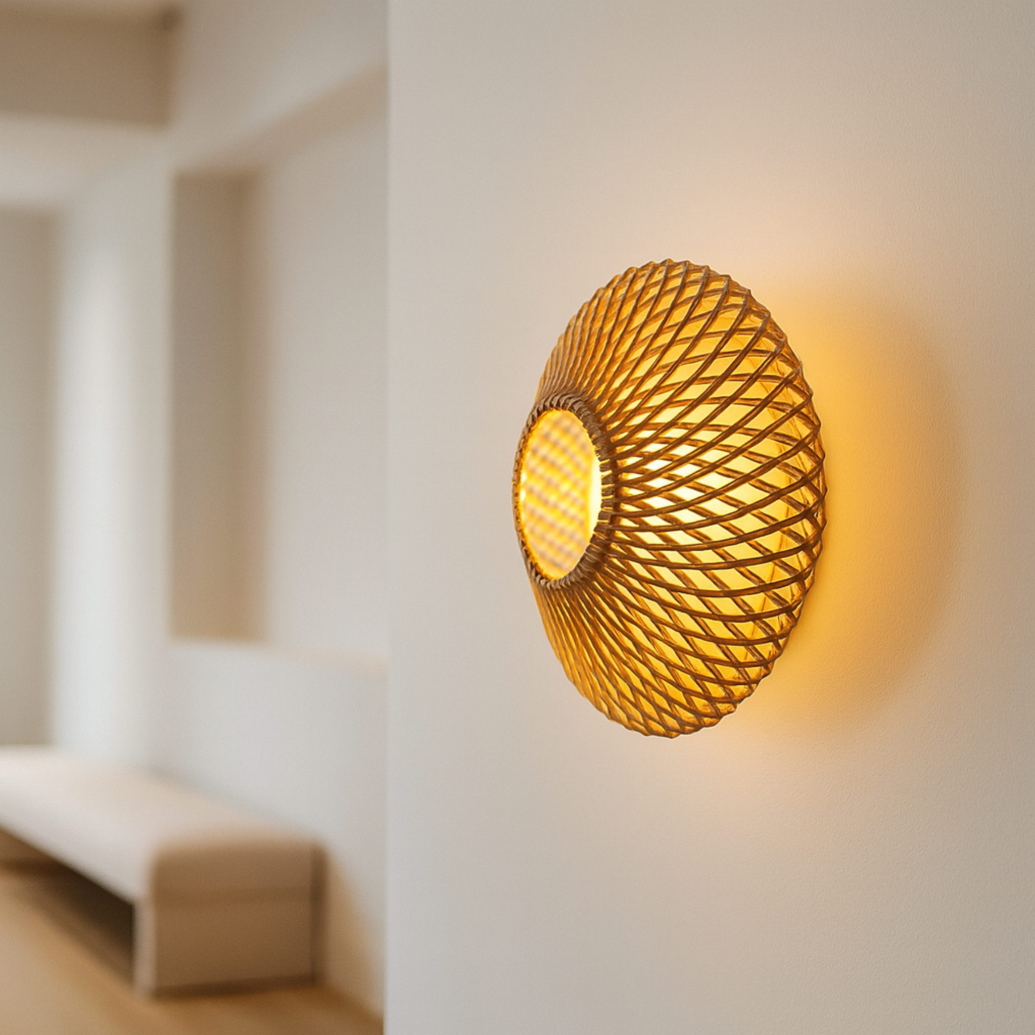 Applique murale en rotin faite main – Artisanat tunisien | Éclairage décoratif naturel