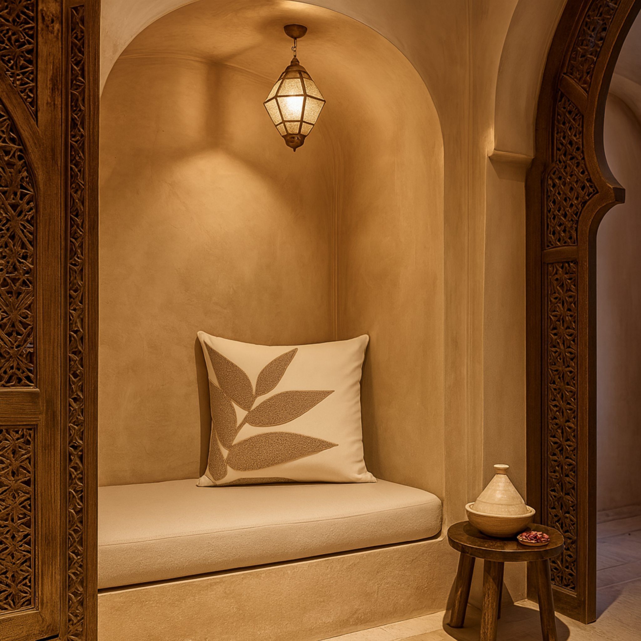 Coussin Décoratif Tunisie – Motif Feuille Beige | Fiolla Home