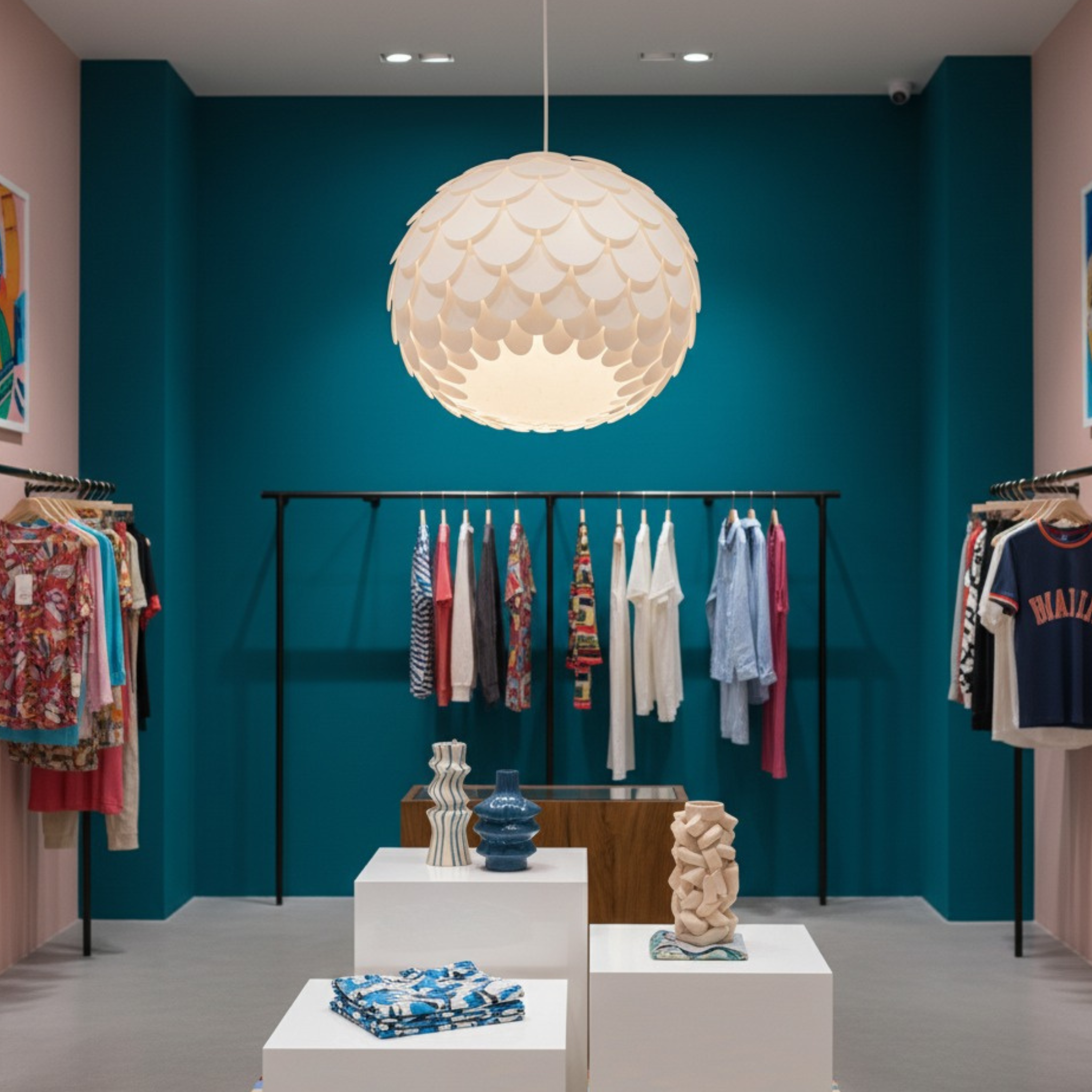 Élevez la pièce avec un lustre écaille blanc qui semble flotter comme une boule de lumière. Chaque “écaille” diffuse et chevauche la suivante, créant un halo doux, homogène et sans éblouir. Au-dessus d’une table, dans un salon minimaliste ou une boutique, la silhouette sculpturale attire le regard sans alourdir l’espace.