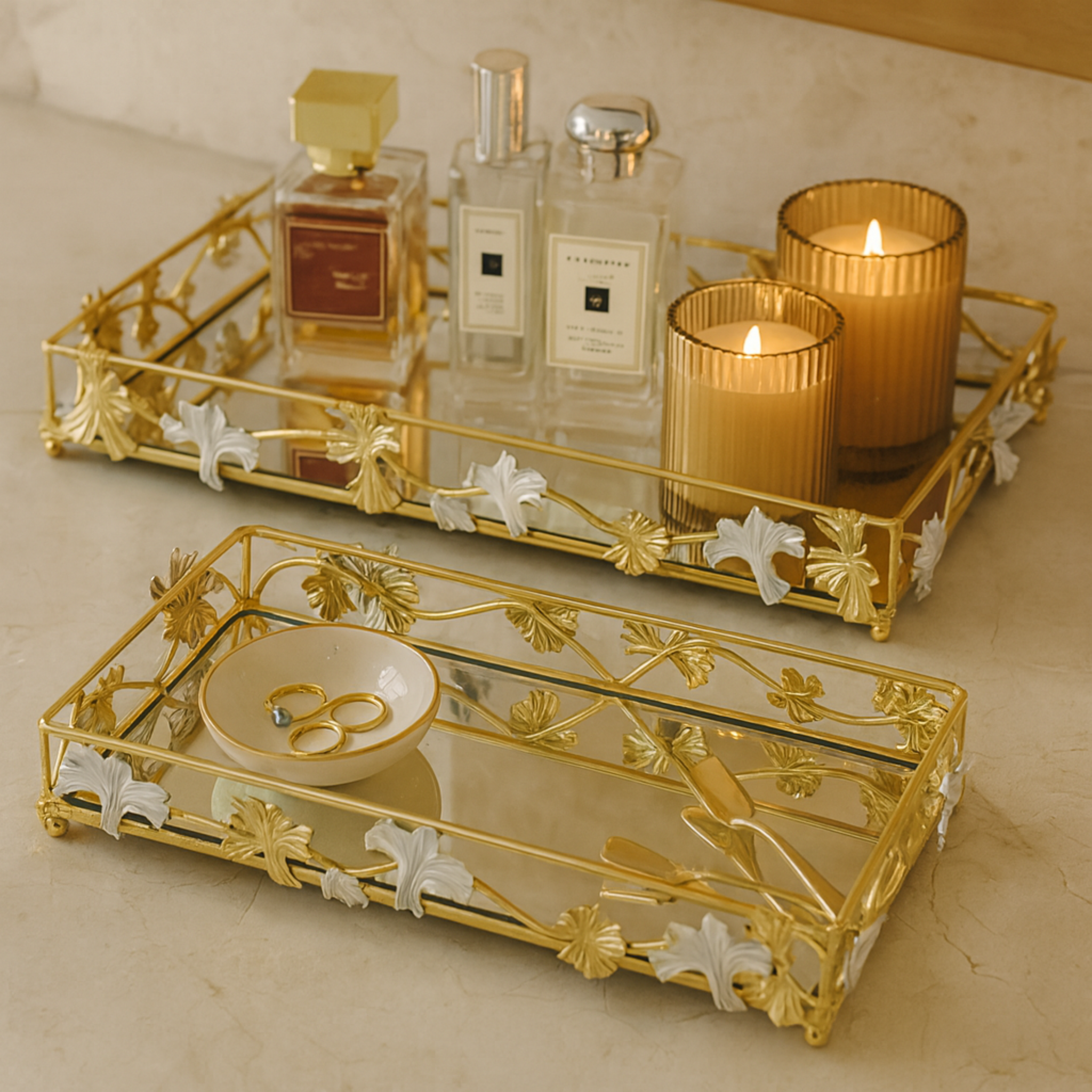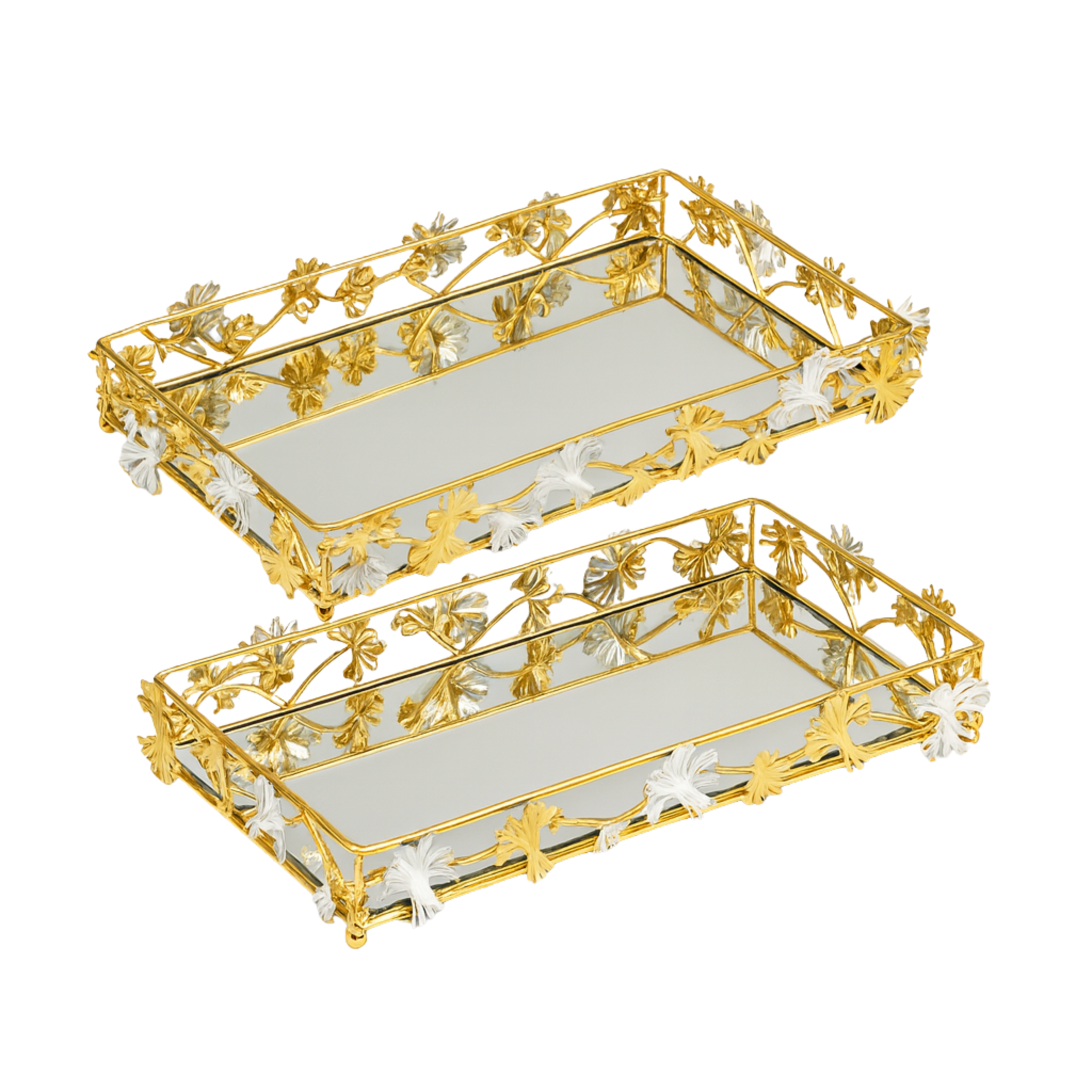 Plateaux de Présentation Dorés avec Miroir | Lot de 2 | Tunisie | Fiolla Home